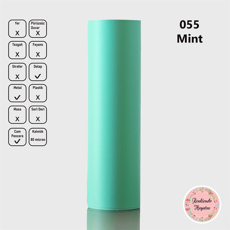 Kendinden yapışkanlı, silinebilir, kaplama folyosu. Düz ve pürüzsüz yüzeyler için uygundur. Su, nem ve sıvı yüzey temizleyicilere karşı dayanıklıdır, rahatlıkla silebilirsiniz. Dolap, Cam, Metal gibi pürüzsüz yüzeyleri kaplayabilirsiniz.